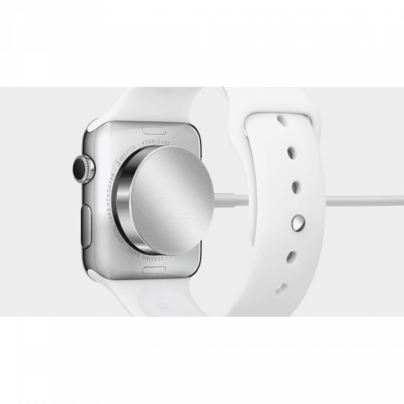 Зарядное устройство Apple Watch charging предназначено для подключения Apple Watch к ноутбуку, внешнему устройству питания (при помощи адаптера). Это метровый кабель с круглой магнитной станцией и USB кабелем
