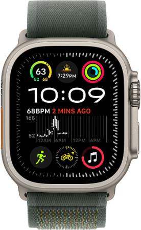 Apple Watch Ultra 2 (2024) 49mm Natural Titanium Case with Green Trail Loop (M/L)