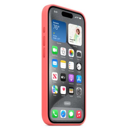 Кроме того, чехол Silicone Case with MagSafe - Guava поддерживает беспроводную зарядку, поэтому вам не придется снимать его при зарядке устройства.